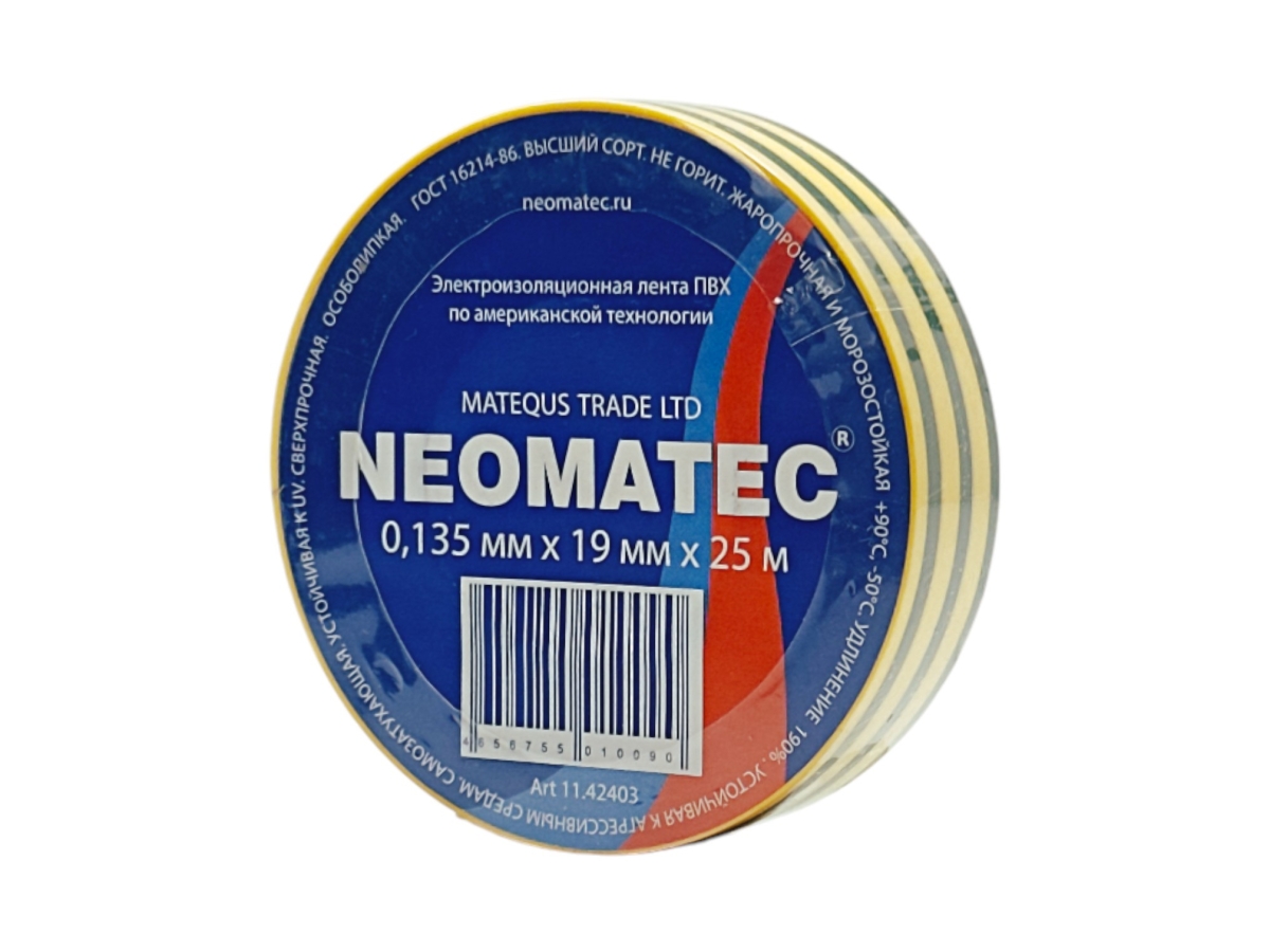 Изолента (25м х 19мм х 0,135мм) жёлто-зелёная NEOMATEC 11.42403представляет собой высококачественную поливинилхлоридную изоляционную ленту толщиной 0,135 мм. Универсальная электроизоляционная ПВХ-лента для общего применения. Огнестойкая лента для изоляции кабелей и проводов на низкое напряжение до 600В. Обеспечивает электрическую и механическую защиту проводов и соединений. Цветные ленты используются для маркировки. Доступна в 8 цветах и 2-х размерах. Лента обладает хорошей адгезией, высокой механической прочностью и эластичностью. Легко рвется руками.