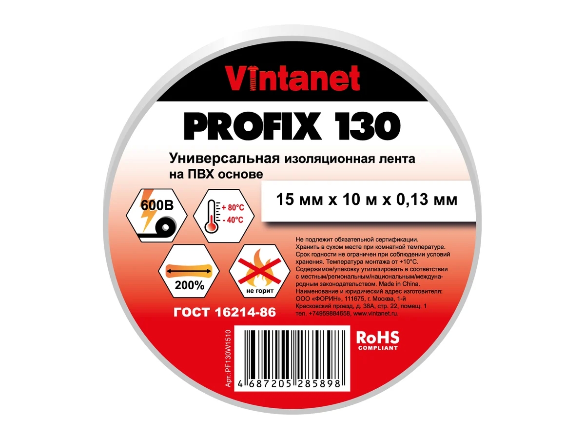 Изоляционная лента PROFIX 130 представляет собой высококачественную поливинилхлоридную изоляционную ленту толщиной 0,13 мм. Универсальная электроизоляционная ПВХ-лента для общего применения. Огнестойкая лента для изоляции кабелей и проводов на низкое напряжение до 600В. Обеспечивает электрическую и механическую защиту проводов и соединений. Цветные ленты используются для маркировки. Доступна в 8 цветах и 2-х размерах. Лента обладает хорошей адгезией, высокой механической прочностью и эластичностью. Легко рвется руками.