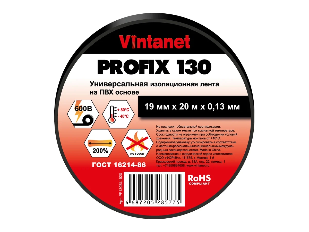 - Электроизоляционная лента PROFIX 130 доступна в следующих размерах 15мм х 10м и 19мм х 20м