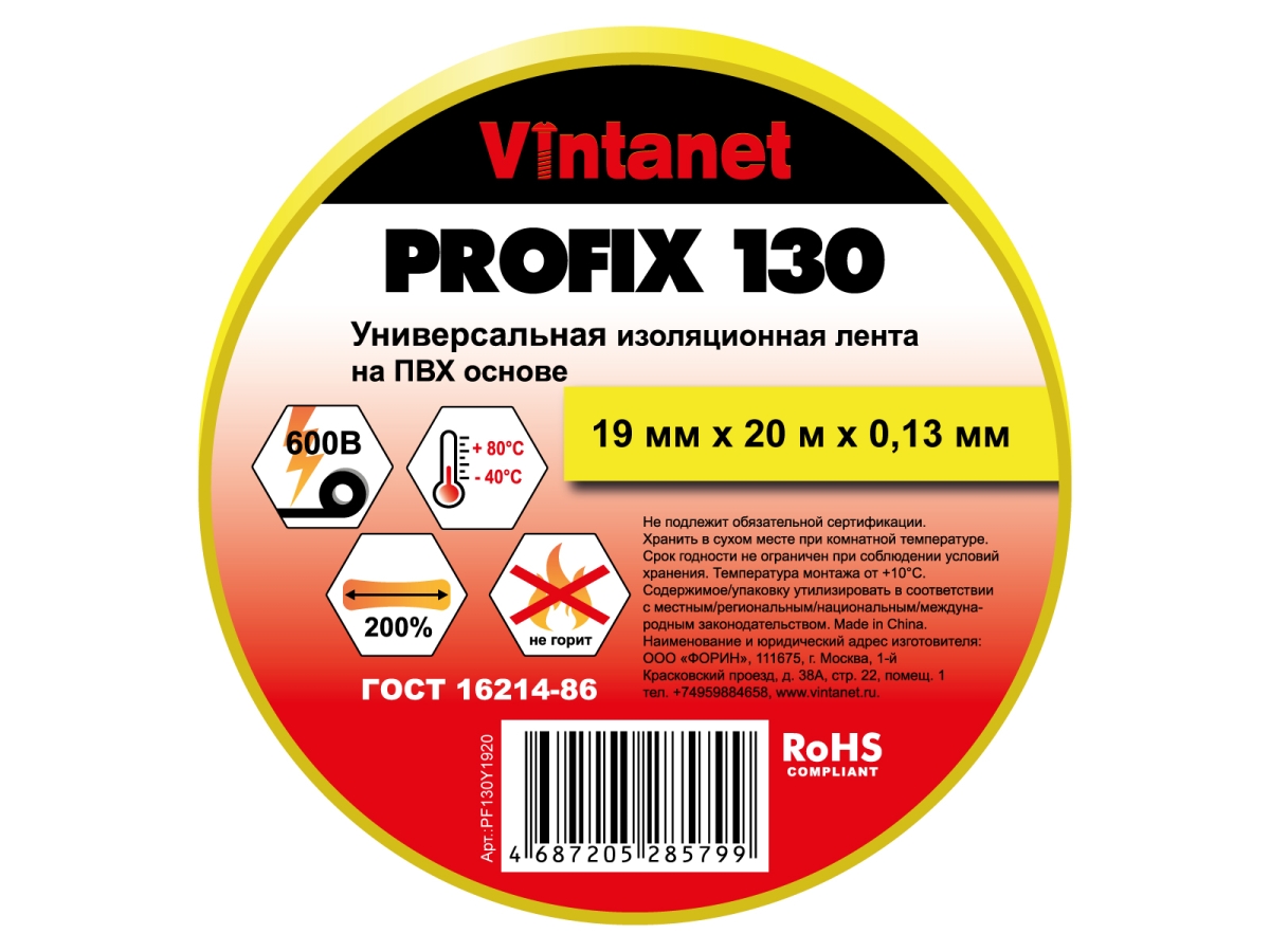 - Электроизоляционная лента PROFIX 130 доступна в следующих размерах 15мм х 10м и 19мм х 20м