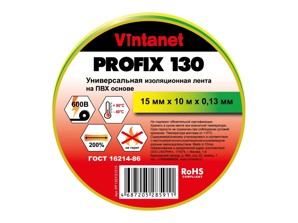 Изоляционная лента PROFIX 130 представляет собой высококачественную поливинилхлоридную изоляционную ленту толщиной 0,13 мм. Универсальная электроизоляционная ПВХ-лента для общего применения. Огнестойкая лента для изоляции кабелей и проводов на низкое напряжение до 600В. Обеспечивает электрическую и механическую защиту проводов и соединений. Цветные ленты используются для маркировки. Доступна в 8 цветах и 2-х размерах. Лента обладает хорошей адгезией, высокой механической прочностью и эластичностью. Легко рвется руками.