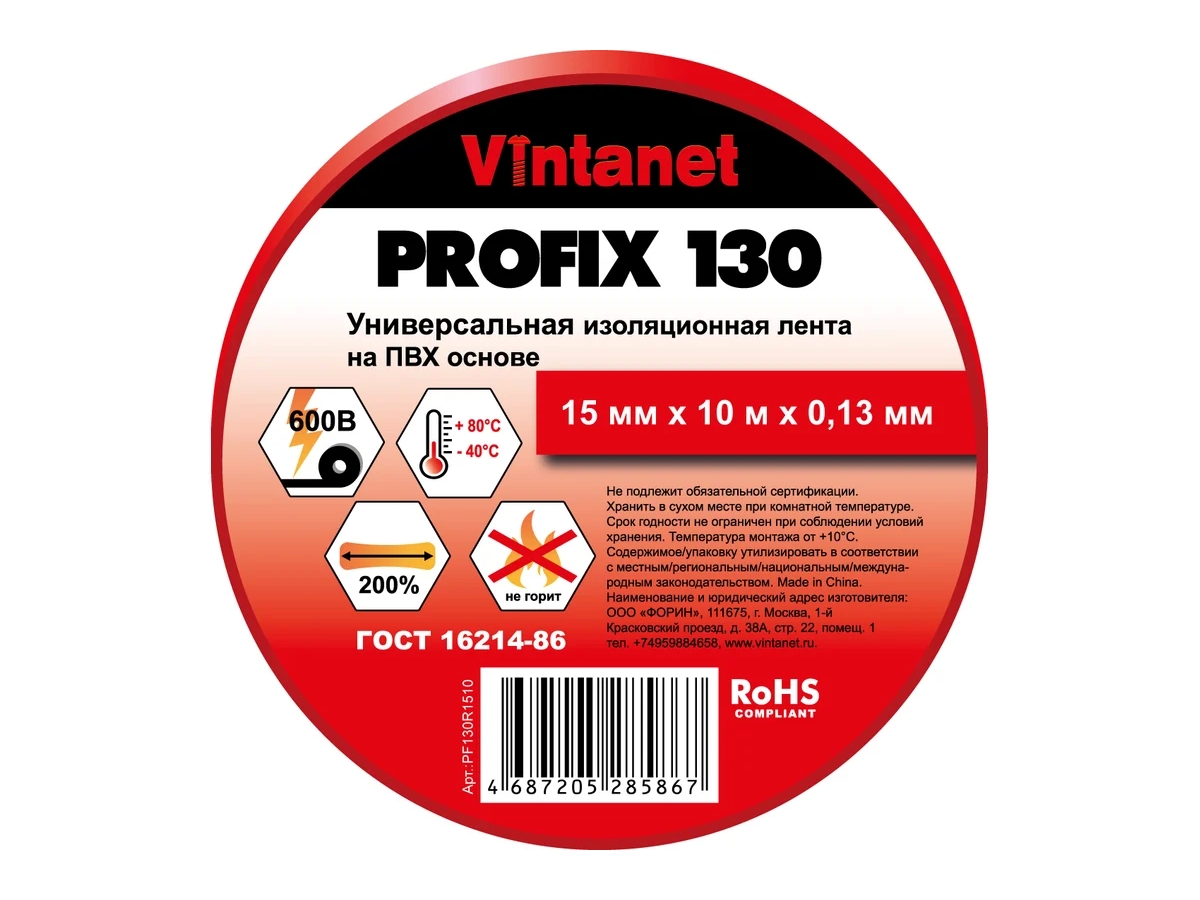 Изоляционная лента PROFIX 130 представляет собой высококачественную поливинилхлоридную изоляционную ленту толщиной 0,13 мм. Универсальная электроизоляционная ПВХ-лента для общего применения. Огнестойкая лента для изоляции кабелей и проводов на низкое напряжение до 600В. Обеспечивает электрическую и механическую защиту проводов и соединений. Цветные ленты используются для маркировки. Доступна в 8 цветах и 2-х размерах. Лента обладает хорошей адгезией, высокой механической прочностью и эластичностью. Легко рвется руками.