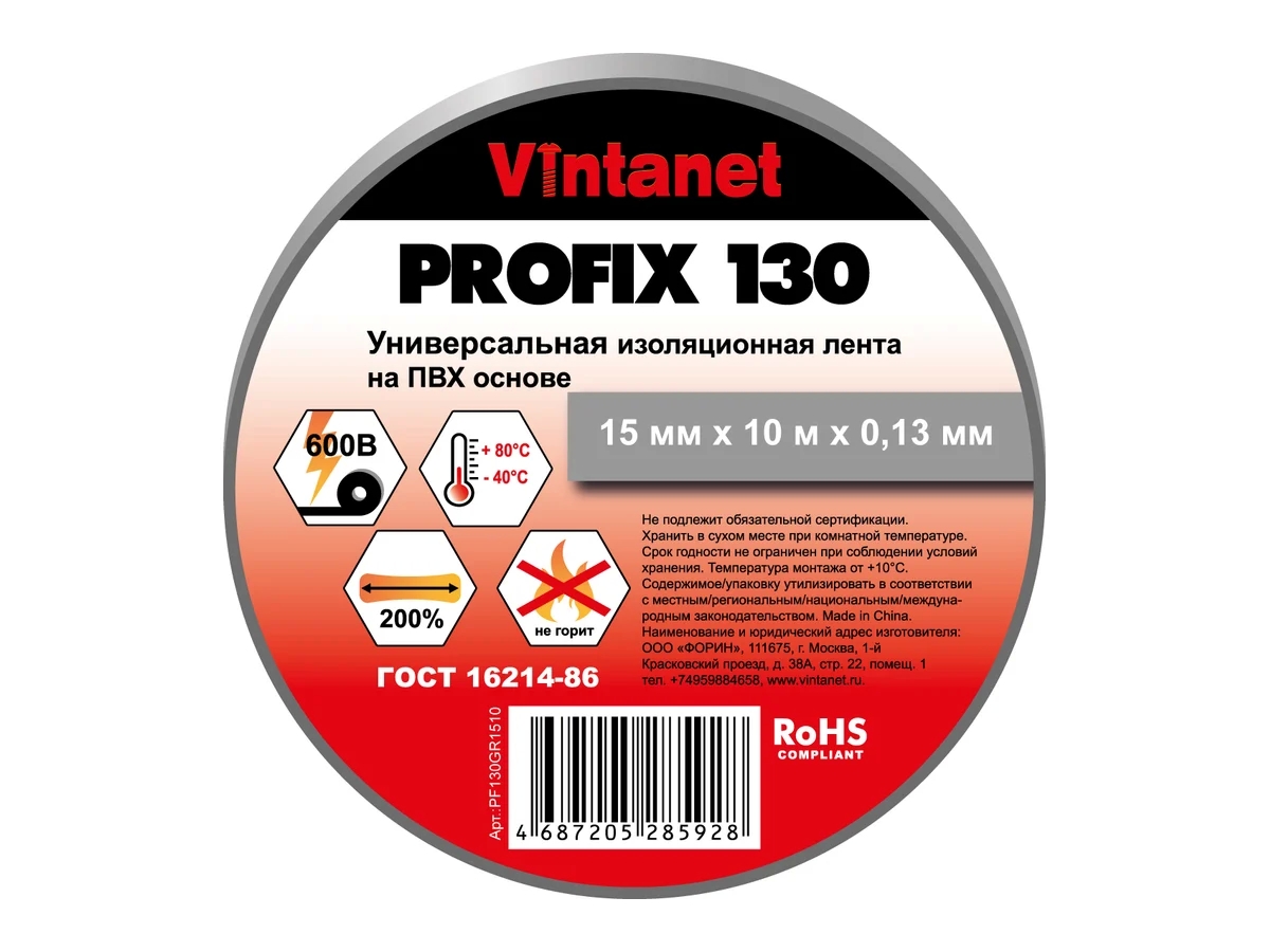 - Электроизоляционная лента PROFIX 130 доступна в следующих размерах 15мм х 10м и 19мм х 20м