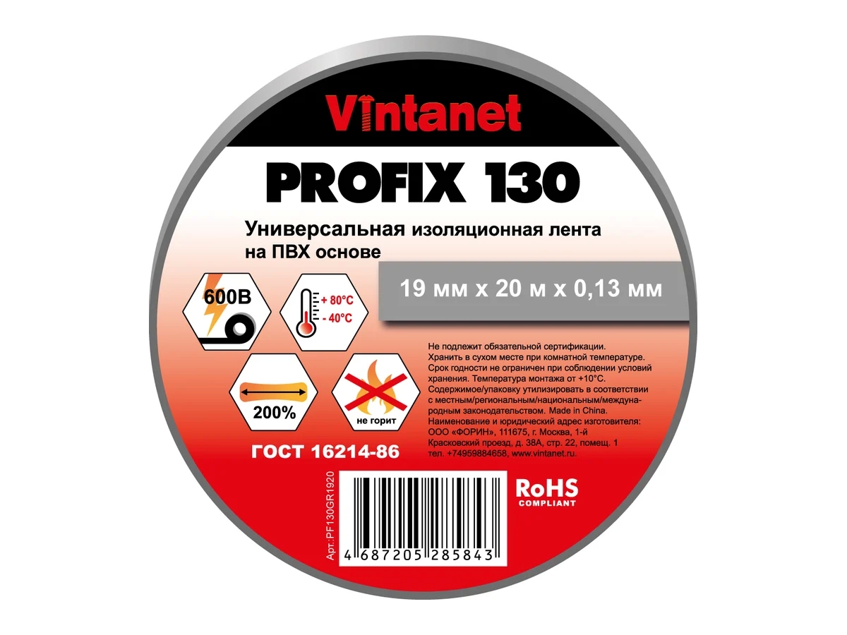 - Электроизоляционная лента PROFIX 130 доступна в следующих размерах 15мм х 10м и 19мм х 20м