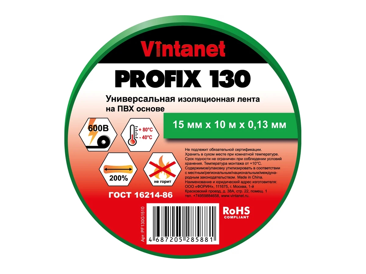 Изоляционная лента PROFIX 130 представляет собой высококачественную поливинилхлоридную изоляционную ленту толщиной 0,13 мм. Универсальная электроизоляционная ПВХ-лента для общего применения. Огнестойкая лента для изоляции кабелей и проводов на низкое напряжение до 600В. Обеспечивает электрическую и механическую защиту проводов и соединений. Цветные ленты используются для маркировки. Доступна в 8 цветах и 2-х размерах. Лента обладает хорошей адгезией, высокой механической прочностью и эластичностью. Легко рвется руками.