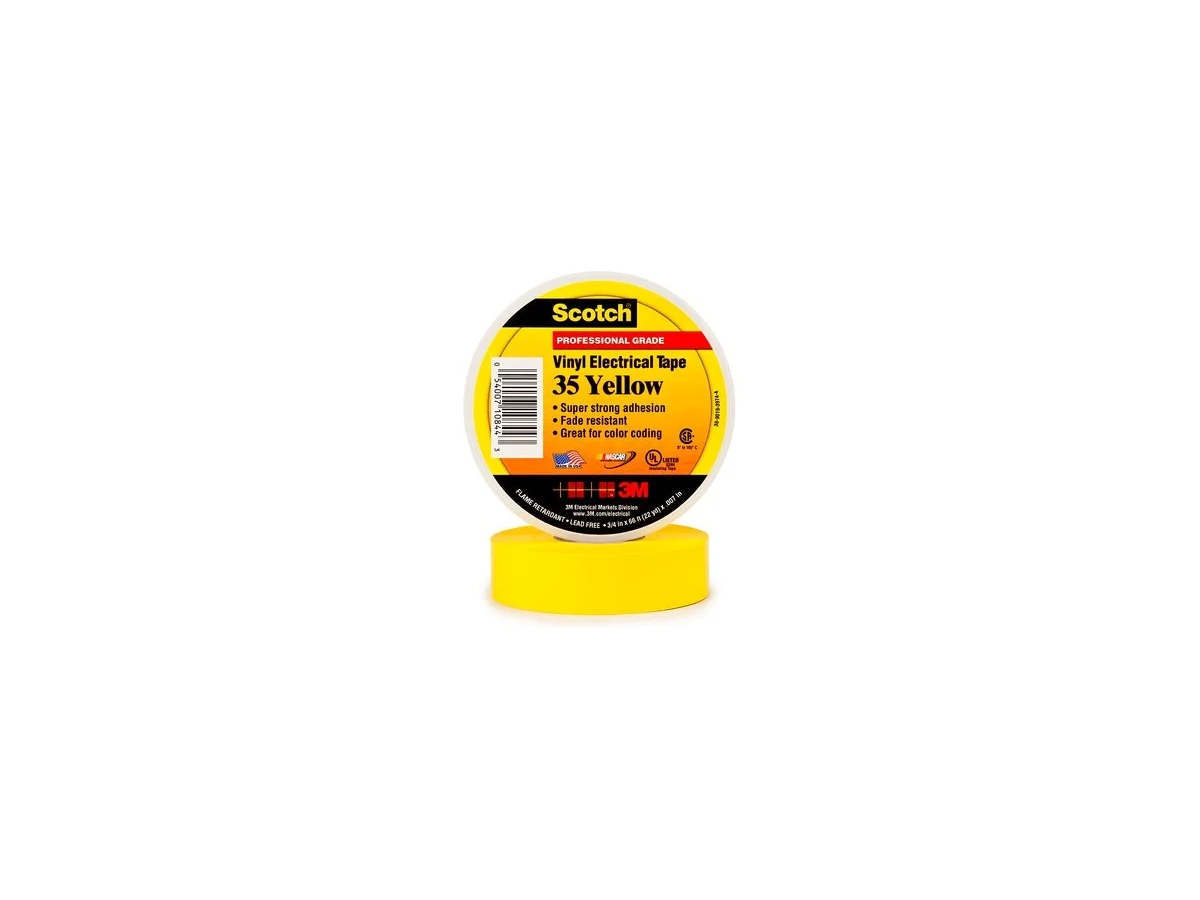 Изоляционная лента высшего класса 3М Scotch 35 желтая 19мм х 20м х 0,18мм 7000031671 подойдет для изоляции проводов и создания безопасного соединения, а также для разметки проводов по цветам. Основа изготовлена из ПВХ с клеевым слоем. Лента отличается стойкостью к химикатам и атмосферным воздействиям.