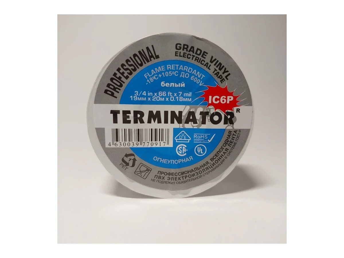 Устойчивая к воздействию огня, холода, погодных условий, большинству химических реагентов ПВХ лента. Толщина 0,18 мм, ширина 19 мм, длина 20 м. Максимальное удлинение 285%(23°С)/112%(0°С). Сопротивление изоляции 10⁶ Ом/см. Номинальное напряжение 600V. Температура эксплуатации от -18°С до +105°С. Самозатухающая. Всепогодная
