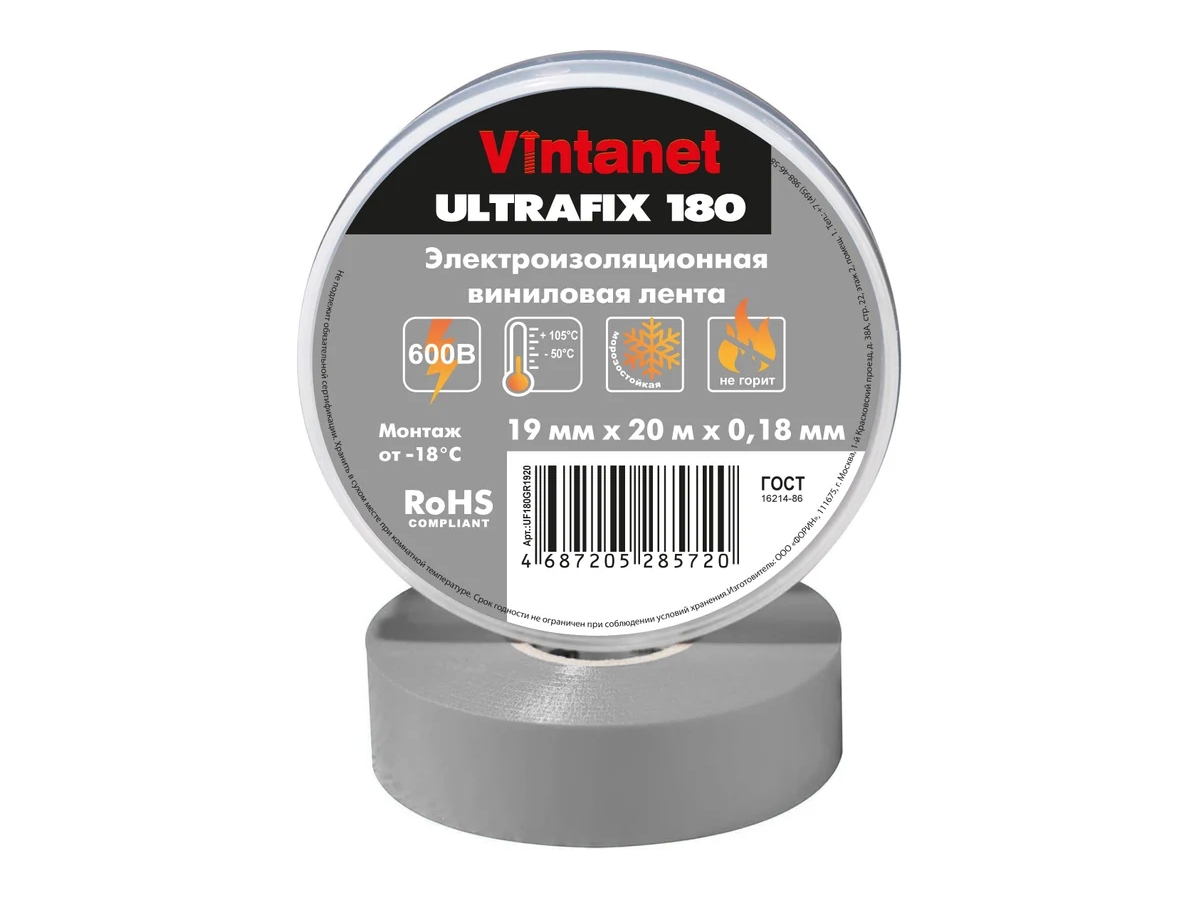 Лента Vintanet Ultrafix 180 (аналог 3М Scotch super 33+) виниловая изоляционная лента толщиной 0,18 мм, предназначена для постоянного использования при температуре окружающей среды от -50°С до 105°С. Обеспечивает возможность монтажа в диапазоне температур от -18°С до 38°С без ухудшения физических характеристик. Обладает высокой устойчивостью к истиранию, воздействию влаги, щелочей, кислот, коррозии и изменяющимся условиям окружающей среды (включая УФ - излучения). Комбинация эластичной основы и эффективного адгезионного слоя обеспечивает влагонепроницаемую электрическую и механическую защиту при минимальном объеме намотки.