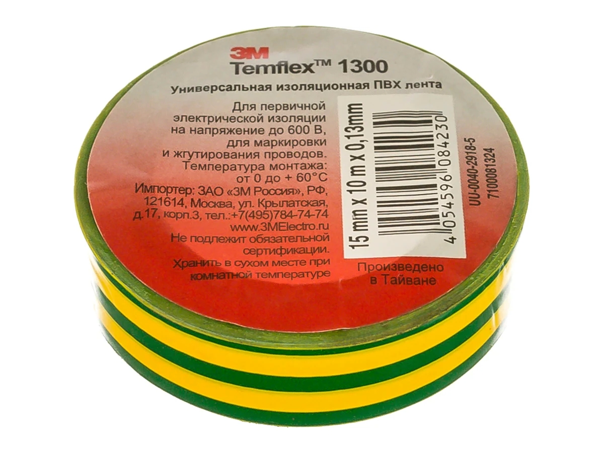 Универсальная изоляционная лента 3М Temflex 1300 желто-зеленая 15мм х 10м х 0,13мм 7000062615 подойдет как для разметки проводов по цветам, так и для их починки, создания изолированного соединения. Лента подойдет для универсального использования. Основа изготовлена из ПВХ с нанесенным клеевым слоем. Цвет - желто-зеленый.