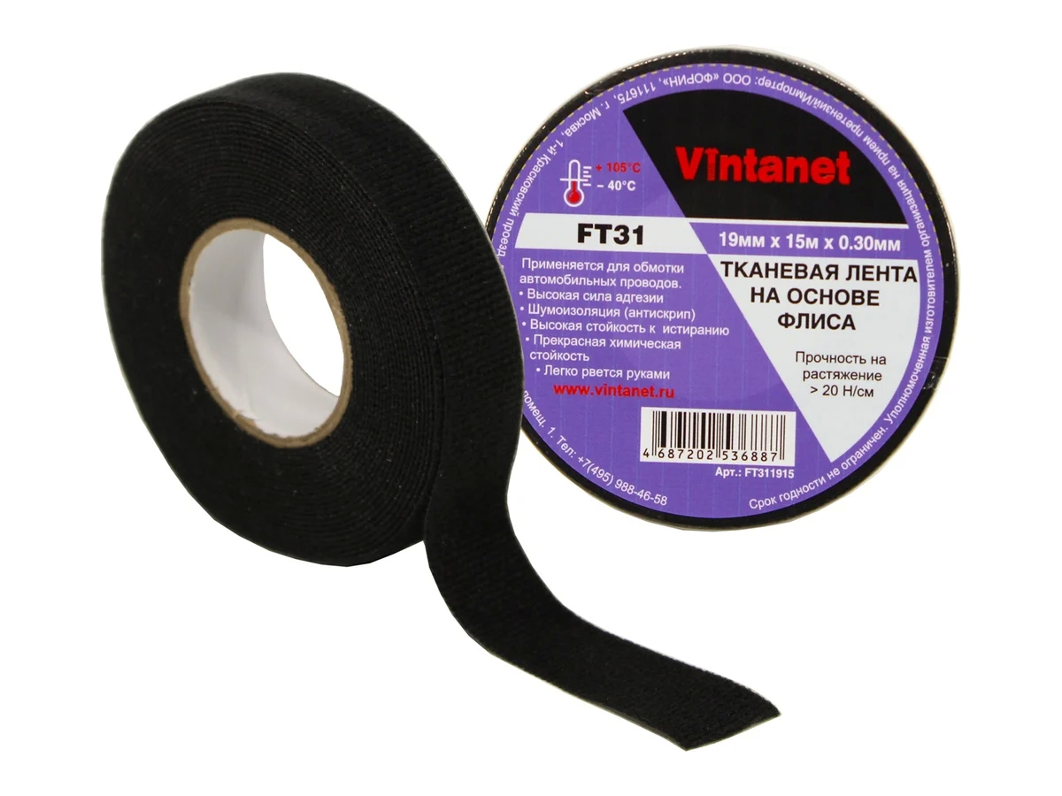 Тканевая лента на основе флиса VINTANET FT31 19 мм, 15 м FT311915 применяется исключительно для обмотки автомобильных жгутов проводки. Из-за мягкого материала основы, флисовая лента особенно подходит для внутренних жгутов проводов автомобиля и может сохранять мягкость и гибкость жгута проводов. Более того, она обладает высокой стойкостью к истиранию и шумам, а также имеет выдающиеся показатели адгезии и прочности на растяжение.