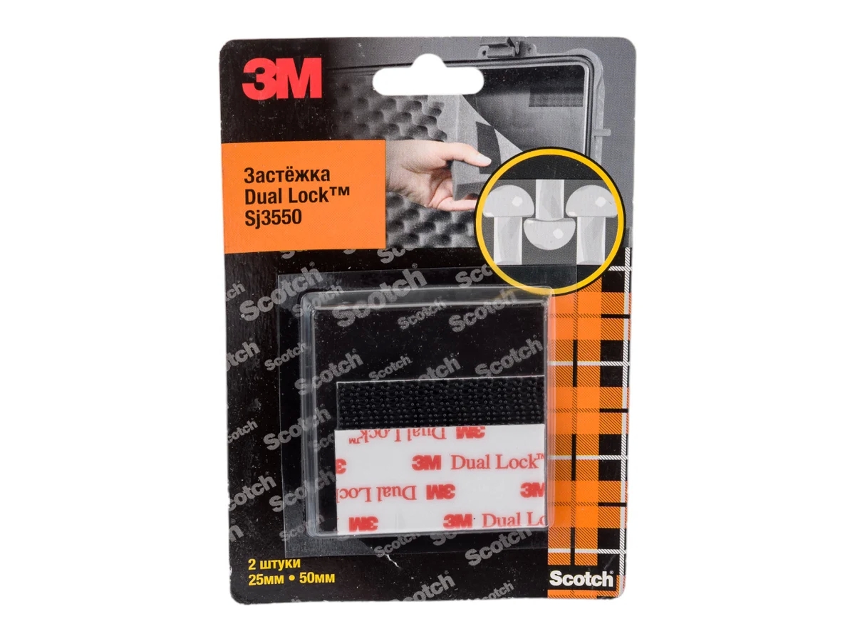Самоклеящаяся застежка Dual Lock™ 3М™ SJ 3550 состоит из двух пластиковых полос с грибовидными штырьками, которые, соединяясь друг с другом, позволяют получить надежное и, в то же время, легко разъединяемое соединение для самых разных применений. С другой стороны застежки - надежная двусторонняя клейкая лента скотч ® 3М™, которую можно приклеить на какую-либо поверхность. Этот тип застежки имеет плотность штырьков 250 штук на квадратный дюйм (~ 39 штук / кв. см) и, как правило, используется в комбинации с застежкой того же типа. Застежка имеет клеевой слой из вспененного акрилового полимера VHB™ белого цвета. Эластичная акриловая основа толщиной 0,94 мм обеспечивает хороший контакт с неровными и текстурными поверхностями. Клеевой слой закрыт прозрачной, легкоудаляемой пленкой-лайнером.