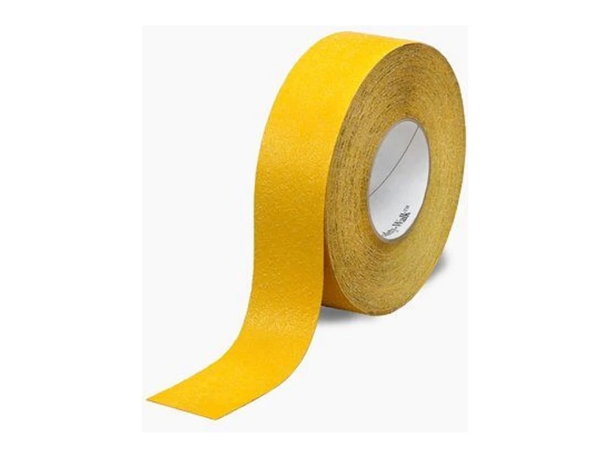 Противоскользящая лента 3М формуемая желтая, размер 51 мм x 18.3 м 7100000611 - это износостойкий материал с высоким коэффициентом трения, имеющий специальную алюминиевую подложку, которая прилегает к краям и прилипает к неровным поверхностям (плиты, головки винтов и ступеньки лестниц).