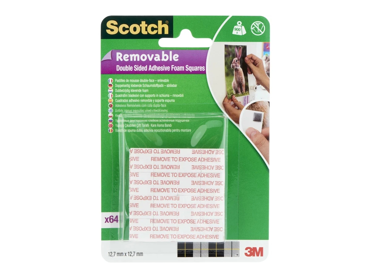 Монтажные двусторонние клейкие подушечки 3М Scotch удаляемые, 64 шт./упак. 7100104813 - это альтернатива винтам и другим видам механического крепежа для крепления без повреждений.