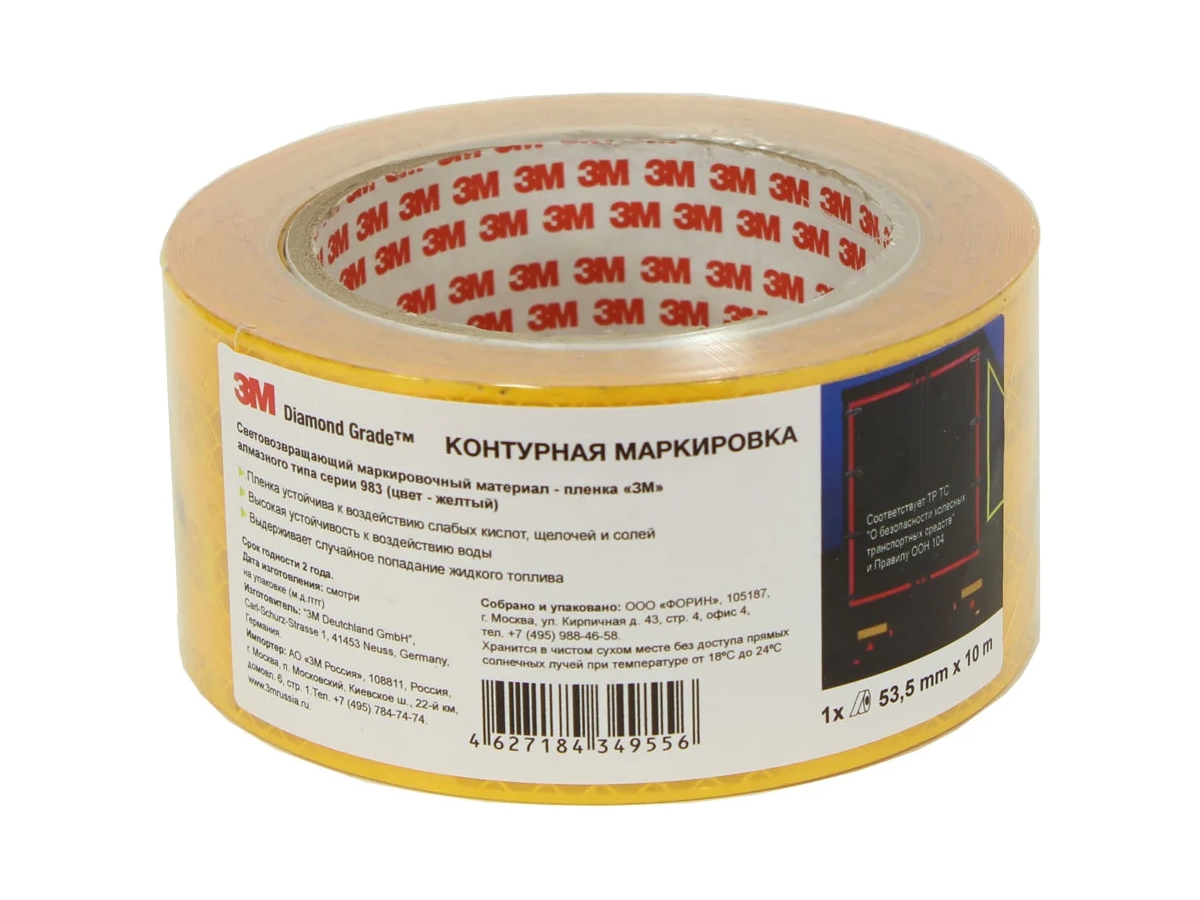 Световозвращающий материал алмазного типа серии 983-71 3М желтый, 53.5 мм х 10 м 4627184349556 представляет собой материал с высокой светоотражающей способностью с оптической системой из микропризм, находящихся в прозрачном полимере и защищенных синтетической пленкой.