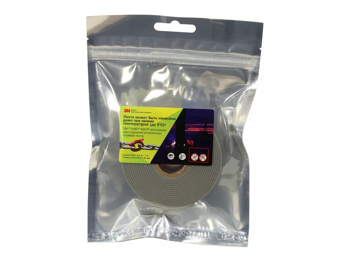 Двусторонняя клейкая лента на вспененной основе 3М 4957F 25мм х 3м 4607166909183 - это изделие из вспененного акрила с закрытыми ячейками и пластиковым лайнером. Специальное преимущество 4957F - склейка неровных поверхностей.