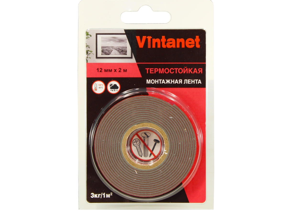 Двусторонняя клейкая монтажная термостойкая акриловая лента VINTANET VN1105, 12 мм х 2 м (аналог 3М GPH 110). Эта лента предназначена для для монтажа или соединения разнообразных поверхностей, в том числе многих пластиков с высокой и средней поверхностной энергией, окрашенных деталей, металлических конструкций разной геометрии, стекла. Отличные характеристики работы при высоких температурах (190°С кратковременно, 120°С долговременно) делают ленту идеальной для применений там, где требуется выдерживать экстремальные нагрузки до 3кг на 1м., или воздействия производственного цикла, как скрепление деталей перед порошковой окраской. Эластичная основа обеспечивает отличное заполнение неровностей и распределение напряжений. Это высокопрочная альтернатива винтам, заклепкам, сварке и другим видам механического крепежа. Лента обеспечивает прочное крепление по всей длине соединения.