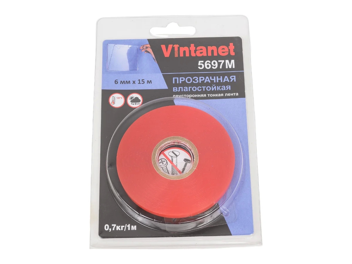 Лента Vintanet 5697М - прозрачная двусторонняя лента толщиной 0,2 мм с акриловым адгезивом на основе полиэфирной пленки. Лента обладает высокой начальной адгезией, стойкостью к влаге, максимальной прозрачностью. Отличается высокой прочностью на отслаивание и на сдвиг, прочно приклеивается к самым разным поверхностям, в том числе к дереву, металлу, стеклу, бумаге, многим пластикам и др. Высокая температурная стойкость – 120°С.