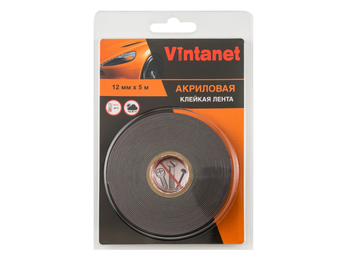 Клейкая двусторонняя акриловая лента Vintanet VN8049, цвет серый, 12 мм х 5 м (аналог 3М GT6008). Она представляет собой двухстороннюю клейкую ленту общего назначения на акриловой основе. Эта лента специально разработана для различных материалов в современном автомобилестроении со средней и высокой поверхностной энергией, таких как ПВХ и АБС. Она также способна поглощать различное тепловое расширение двух материалов. Лента из вспененного акрила имеет высокую начальную адгезию. В сочетании с праймером, эта лента гарантирует превосходную адгезию к материалам с низкой поверхностной энергией.