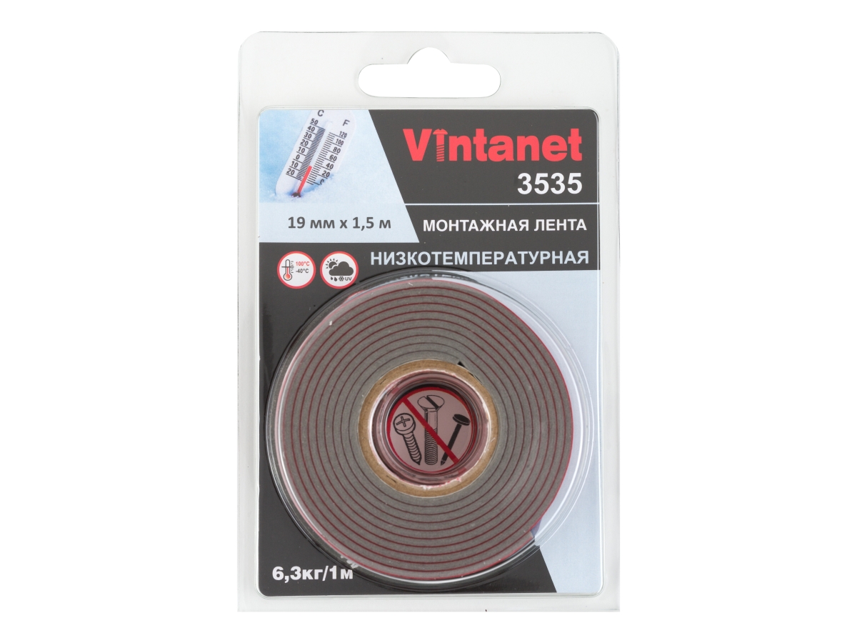 Лента Vintanet 3535(аналог 3М 4957) - двусторонняя клейкая лента толщиной 1,6 мм на основе эластичного вспененного акрила. Лента предназначена для соединения разнообразных поверхностей, в том числе многих пластиков с высокой и средней поверхностной энергией, стекло, сталь, алюминий, керамика. Лента имеет очень высокую начальную адгезию. Клеевой слой был специально модифицирован для улучшения адгезии при температурах от 0°С и выше. В сочетании с праймером эта лента гарантирует превосходную адгезию на материалах с низкой поверхностной энергией.