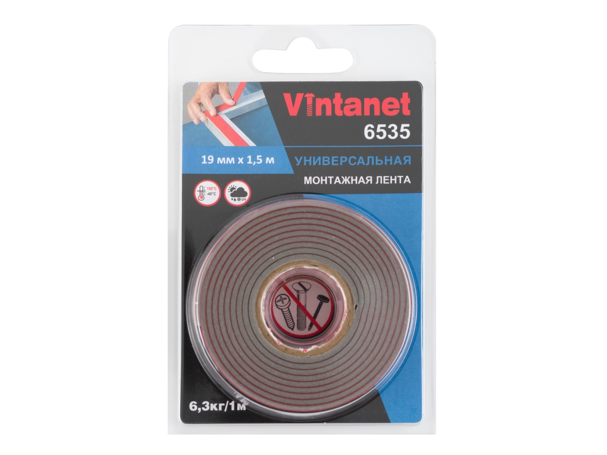 Лента Vintanet 6535 - двусторонняя клейкая лента толщиной 1,6 мм на основе 100% вспененного акрила. Лента предназначена для соединения разнообразных поверхностей, в том числе многих пластиков с высокой и средней поверхностной энергией, стекло, сталь, алюминий, керамика. Лента имеет очень высокую начальную адгезию. Лента специально разработана для склеивания материалов с высокой и средней поверхностной энергией типа ПВХ и АБС пластика. Лента способна компенсировать разницу коэффициентов температурного расширения склеенных материалов. В сочетании с праймером эта лента гарантирует превосходную адгезию на материалах с низкой поверхностной энергией.