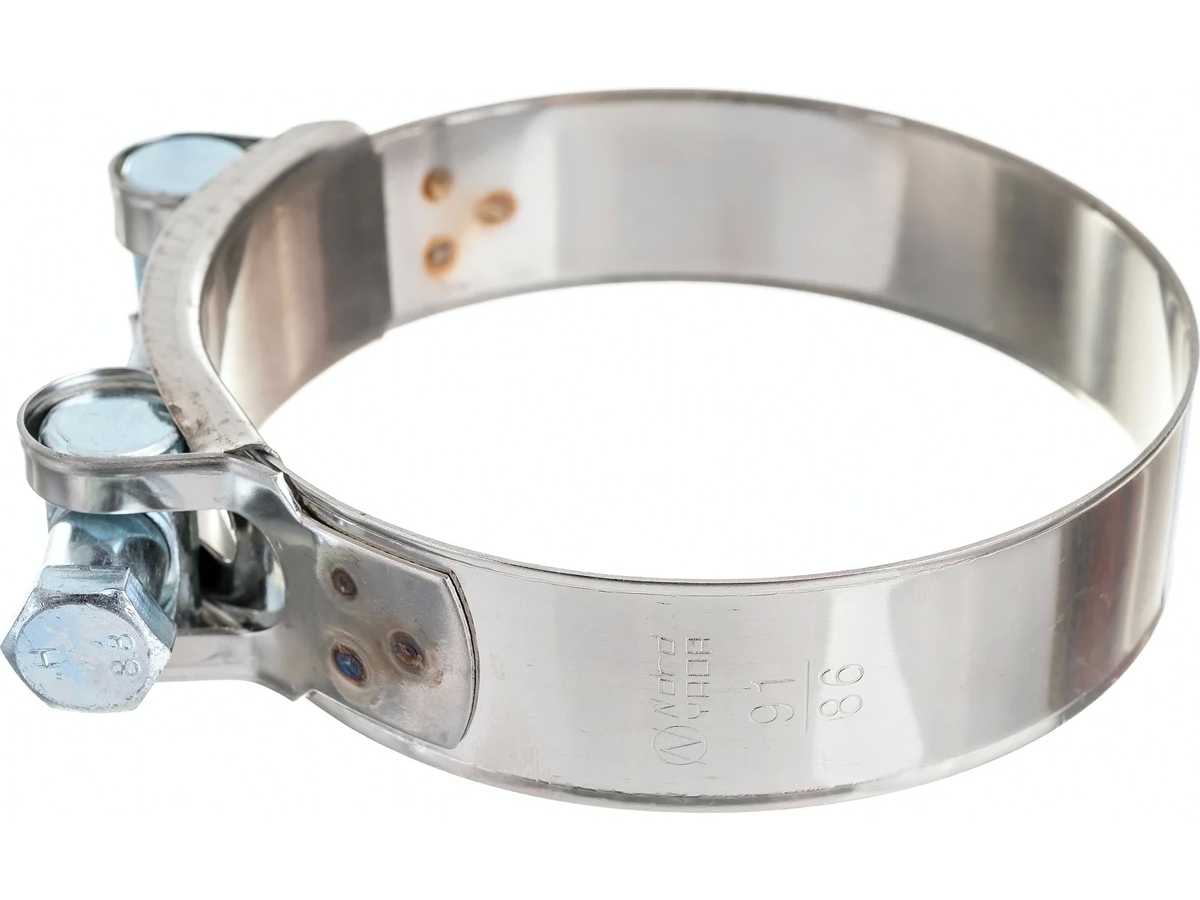 Силовой хомут Nord-Yada Д: 86-91 мм, Ш: 24 мм, Т: 0,8 мм, болт: М8х75, нерж. сталь 902893 применяется для монтажа жестких и тяжелых толстостенных шлангов из резины и ПВХ там, где требуются высокие показатели выдерживаемого давления или вакуума. Герметичность соединения обеспечивается высоким стягивающим усилием по всей поверхности ленты хомута. Обладает высокой виброустойчивостью и стойкостью к коррозии.