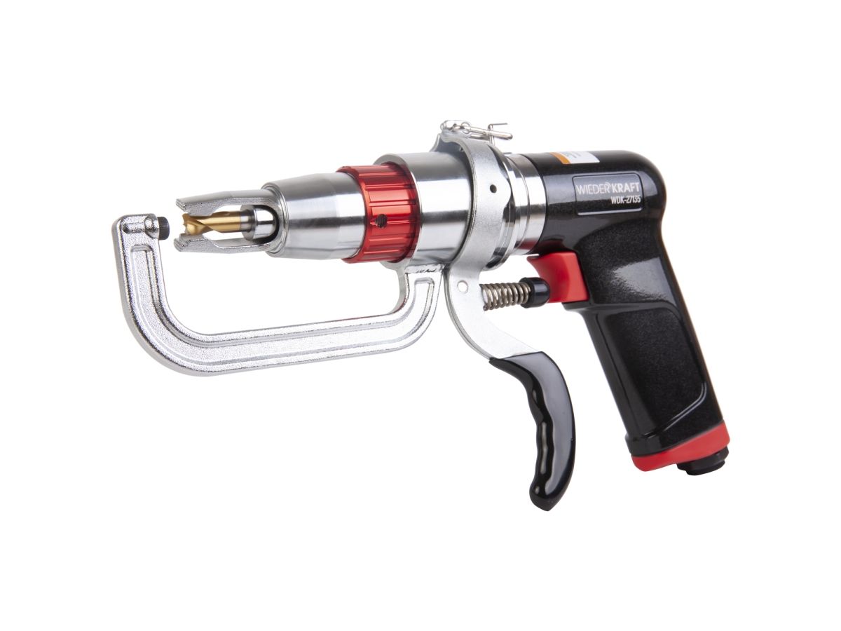 Пневматическая дрель WiederKraft WDK-27135 позволяет быстро и аккуратно высверливать сварные точки на панелях кузова автомобиля при проведении кузовных работ.