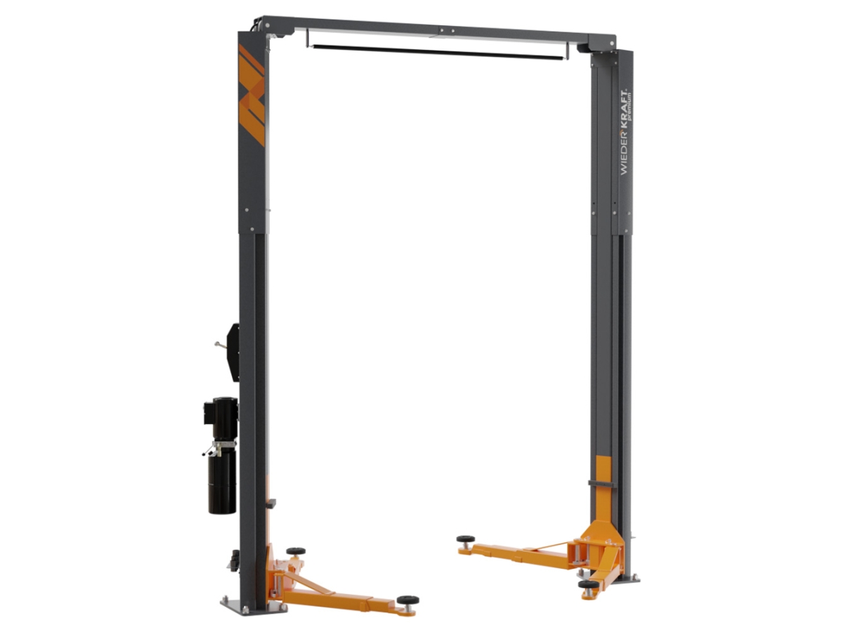 Двухстоечный подъемник с верхней синхронизацией WiederKraft WDK-526 грузоподъемностью 4200 кг. Отличается высокой надежностью конструкции: усиленные подъемные лапы, колонны US-TYPE, направляющие каретки из запатентованного полимера, стальные шкивы (сталь 45), уплотнители Hallite (Великобритания), стальные тросы 9,5 мм, толщина металла 6 мм, защитные шторки на внутренней части колонн. Подъемник имеет асимметричную конструкцию 30°, что обеспечивает удобство при посадке/высадке из автомобиля. Регулировка высоты подъемника от 3900 мм до 4100 мм позволяет установить подъемник в помещениях с ограниченной высотой потолков. S-образный профиль колонн американского типа позволяет выдерживать большие нагрузки и обеспечивает повышенную жесткость и устойчивость конструкции подъемника, в отличие от подъемников со стандартным профилем. Электро- и гидропроводка проложена в штатных защитных кожухах, все подвижные части внутри колонн закрыты специальной шторкой, защищающей узлы и проводку подъемника от грязи.