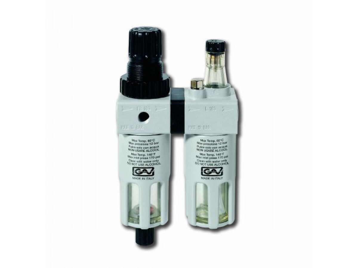 Фильтр регулятор лубрикатор FRL-180 1/4 GAV предназначен для очистки от воды, масла и пыли сжатого воздуха, поступающего от компрессора. Включает в себя фильтр-регулятор FR и масленку L. На корпусе имеется вентиль для регулировки давления, таким образом, фильтр также выполняет функцию регулятора.