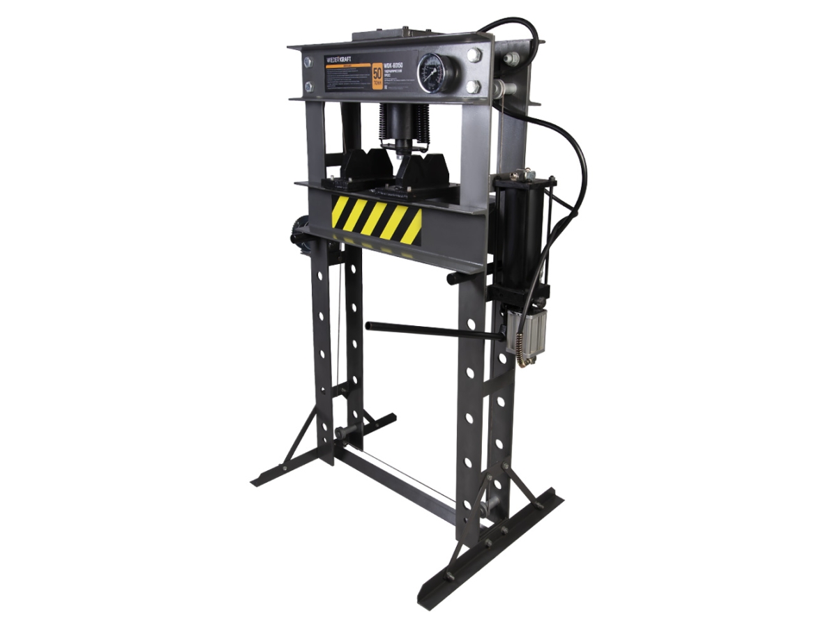 Напольный пневмогидравлический пресс WiederKraft WDK-80150, который обеспечивает усилие в 50000 кг. Используется в промышленности, автосервисах и СТО для запрессовки и выпрессовки деталей. Регулировка рабочей платформы по высоте осуществляется при помощи лебедки. Манометр располагается на уровне глаз оператора для возможности визуального контроля за давлением в системе. Жесткая и прочная сварная рама обеспечивает долговечность оборудования даже при интенсивной эксплуатации. Модель отличается легкостью управления, прочностью конструкции, а также отсутствием необходимости проведения сложного технического обслуживания.