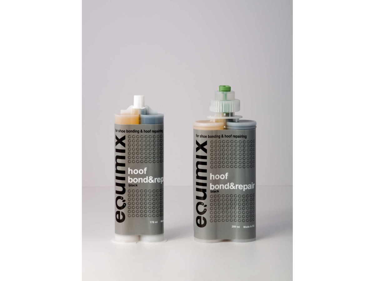 HOOF BOND & REPAIR - это быстросохнущий двухкомпонентный клей на основе полиуретана, подходящий для приклеивания стальных и алюминиевых подков и для восстановления копыт (ремонт стенок копыт).