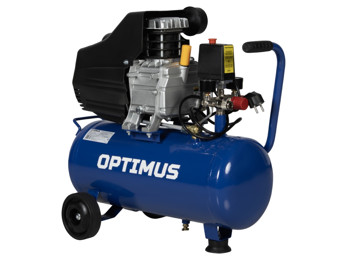 Масляный поршневой компрессор с ременным приводом OPTIMUS OPT-302430, который обеспечивает производительность 300 л/мин. Представляет собой мощный современный аппарат, который вырабатывает воздух со сжатием в 8 бар. Ресивер объемом 24 литра обеспечивает продолжительную и эффективную работу. Благодаря наличию регулятора давления, при необходимости, можно легко и плавно менять величину давления подачи воздуха. Покрытие аппарата устойчиво к влиянию коррозии в течение всего срока службы. Контрольное окно картера позволяет оператору следить за уровнем и своевременно производить замену масла. Два больших колеса и удобная высокая ручка гарантируют простоту перемещения агрегата в рабочей зоне. Компрессор оснащен ребристой головкой, которая быстро отводит тепло. Опорная ножка на корпусе обеспечивает отличную устойчивость на поверхности, а так же поглощение вибраций при работе компрессора. Устройство оснащено воздушным фильтром, который очищает всасываемый воздух от пыли и других загрязнений. Модель широко используется с пистолетами для продувки, краскораспылителями, аэрографами, пневмостеплерами, пистолетами для подкачки шин. Основными преимуществами данного агрегата являются ременной привод, эффективное охлаждение, ресивер на 24 литра и двигатель мощностью 2,2 кВт, обеспечивающий высокую производительность — 300 л/мин.