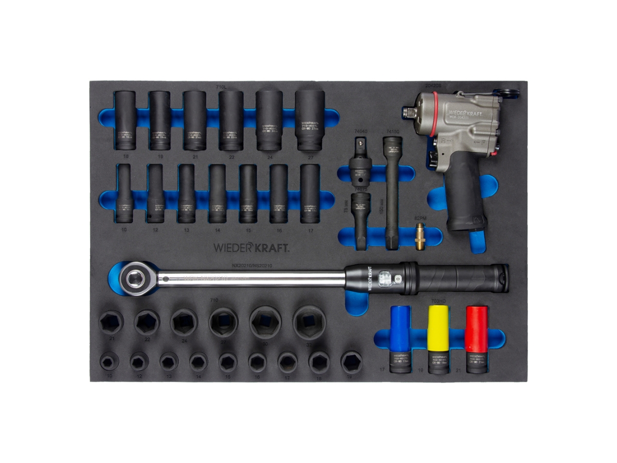 Набор пневматического и динамометрического инструмента WiederKraft WDK-3720X, который предназначен для работы с крепежом шестигранного профиля. Набор укомплектован компактным пневматическим гайковертом WDK-20420S для работы в труднодоступных местах с ограниченным пространством. Динамометрический ключ WDK-NX20210 предназначен для затяжки резьбовых соединений с требуемым значением крутящего момента в направлении часовой стрелки (CW) и против часовой стрелки (CCW). Широкий диапазон измерений значительно увеличивает область применения. Особенностями ключа являются максимальная погрешность измерений 4% от установленного значения на шкале, фиксатор значения крутящего момента нажимного типа, оптомеханическая шкала с многослойной защитой от попадания пыли. Индустриальный стандарт – высокая точность и большой рабочий ресурс (до 50 000 операций).