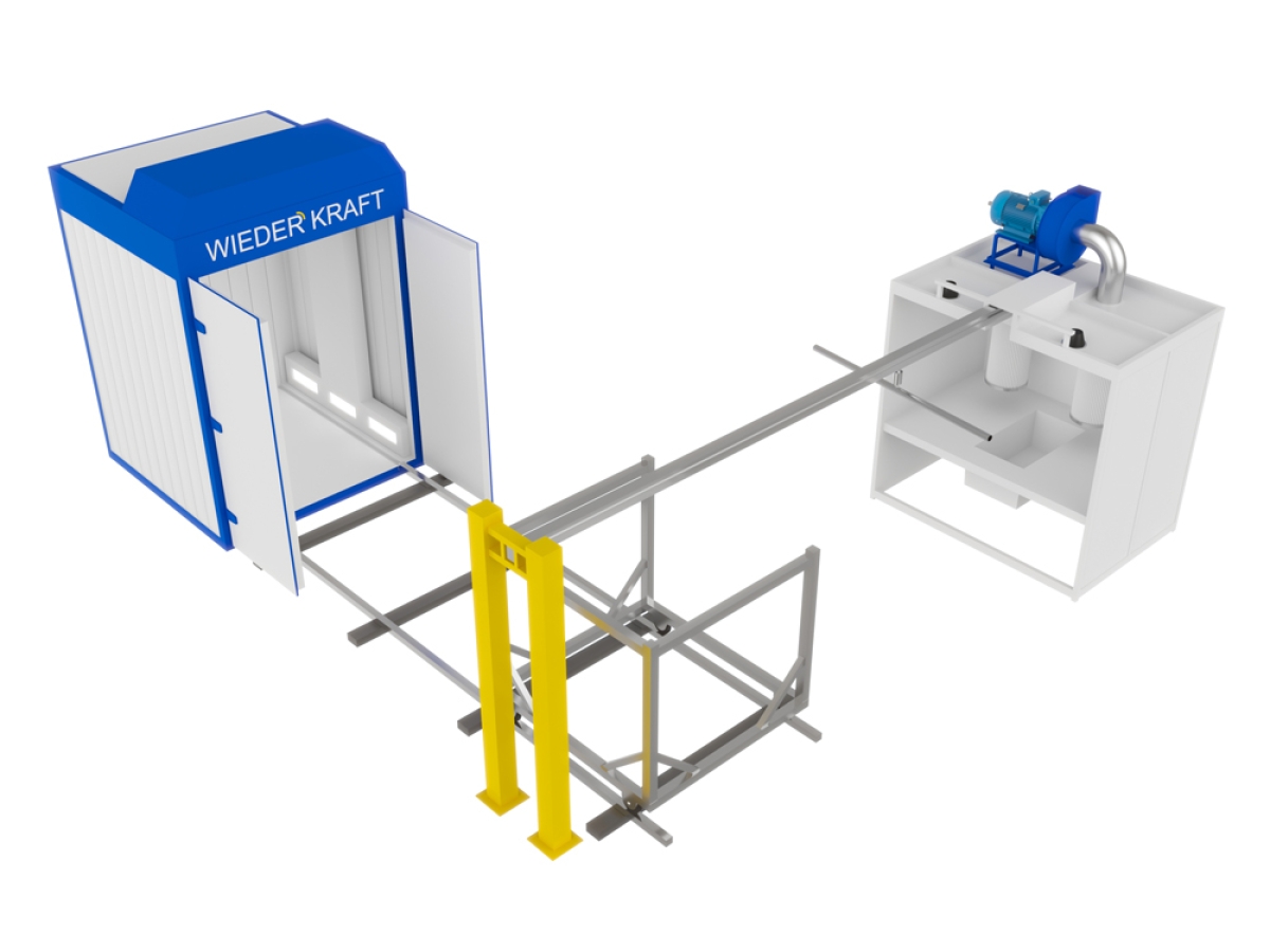 Комплекс для порошковой окраски колес и мелких деталей состоит из камеры окраски и камеры полимеризации.