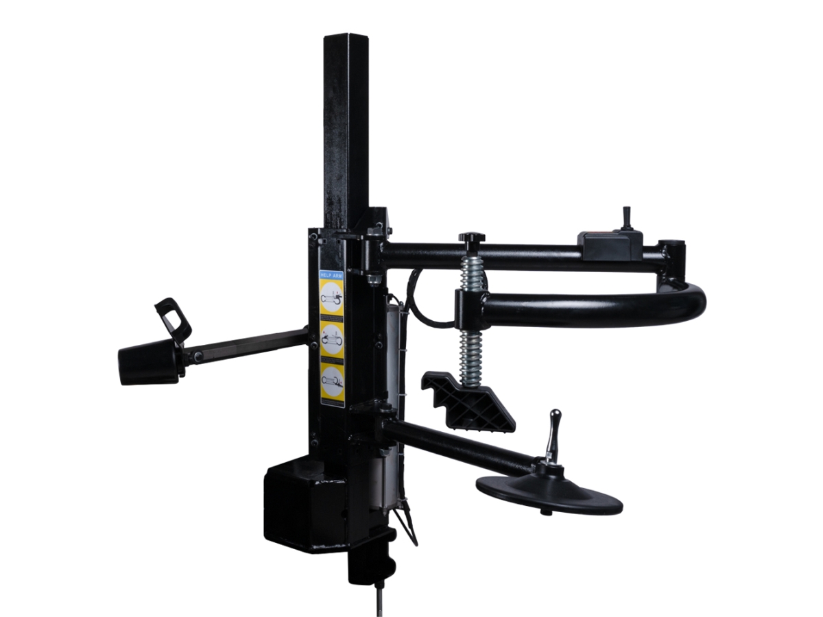 Вспомогательное устройство «третья рука» WiederKraft WDK-76RH, которое устанавливается на шиномонтажные станки WDK-709222, WDK-709238, WDK-709722 и WDK-709738. Данное устройство позволяет легко и безопасно монтировать и демонтировать широкие низкопрофильные колеса, а также колеса с жестким кордом. Его использование исключает риск повреждения обода диска и борта покрышки и существенно снижает физическую нагрузку оператора. Основной задачей «третьей руки» является плотное прижатие колеса к рабочему столу и удерживание борта шины в нужном положении. Прижимной рычаг облегчает заведения монтажной головки и введения монтировки между диском и боковиной шины при ее снятии. Также он служит для удобного прожима боковины шины до уровня монтажного ручья диска, облегчает процесс монтажа шины и уменьшает натяжение боковины. Прижимной элемент борта поворачивается вместе с колесом во время работы на 360 градусов. Нижний опорный диск используется для дополнительной поддержки и облегчения подъема шины вверх при снятии. Он особенно удобен при работе с большими и тяжелыми колесами. Устройство устанавливается на правую сторону автоматического шиномонтажного станка.