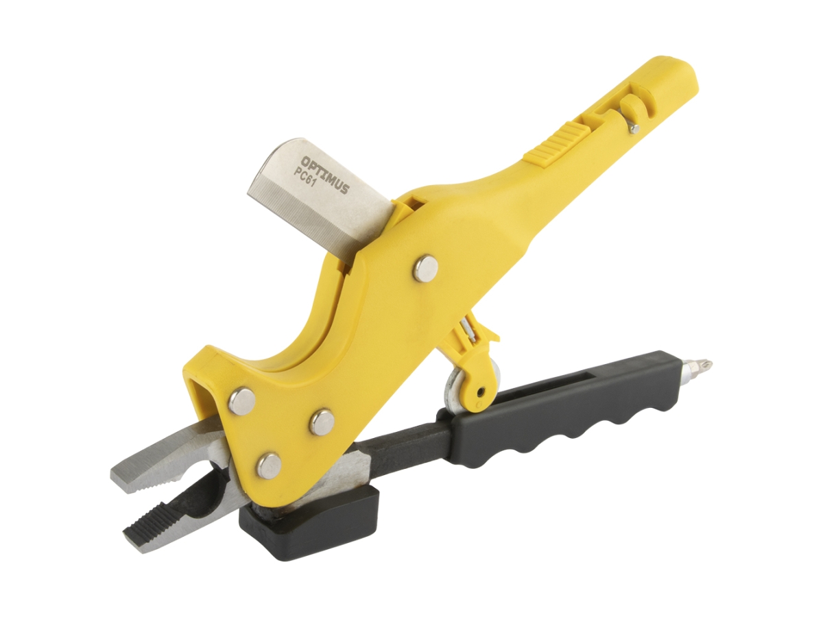 Мультитул PC61 – универсальный инструмент для выполнения различных задач от известного бренда OPTIMUS. Способен заменить целый комплект девайсов, так как один PC61 может выполнять функции 6 различных приспособлений: отвертки с плоским или крестообразным шлицем, проводных кусачек, трубореза с максимальным диаметром трубы 32 мм, киянки, клещей и стеклобоя. Подходит как для домашнего ремонта, так и для профессионального использования.