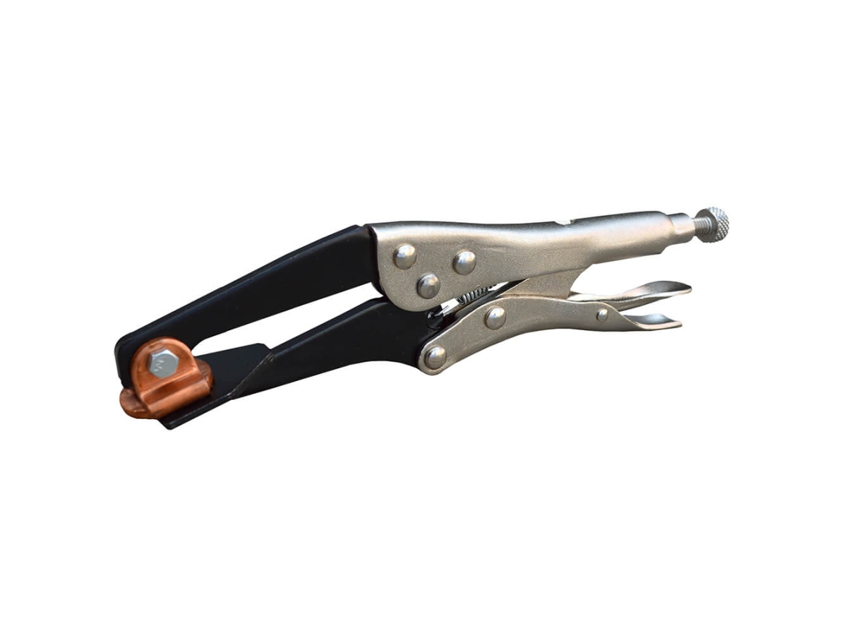 Зажим для точечной сварки с медной подложкой и фиксатором.