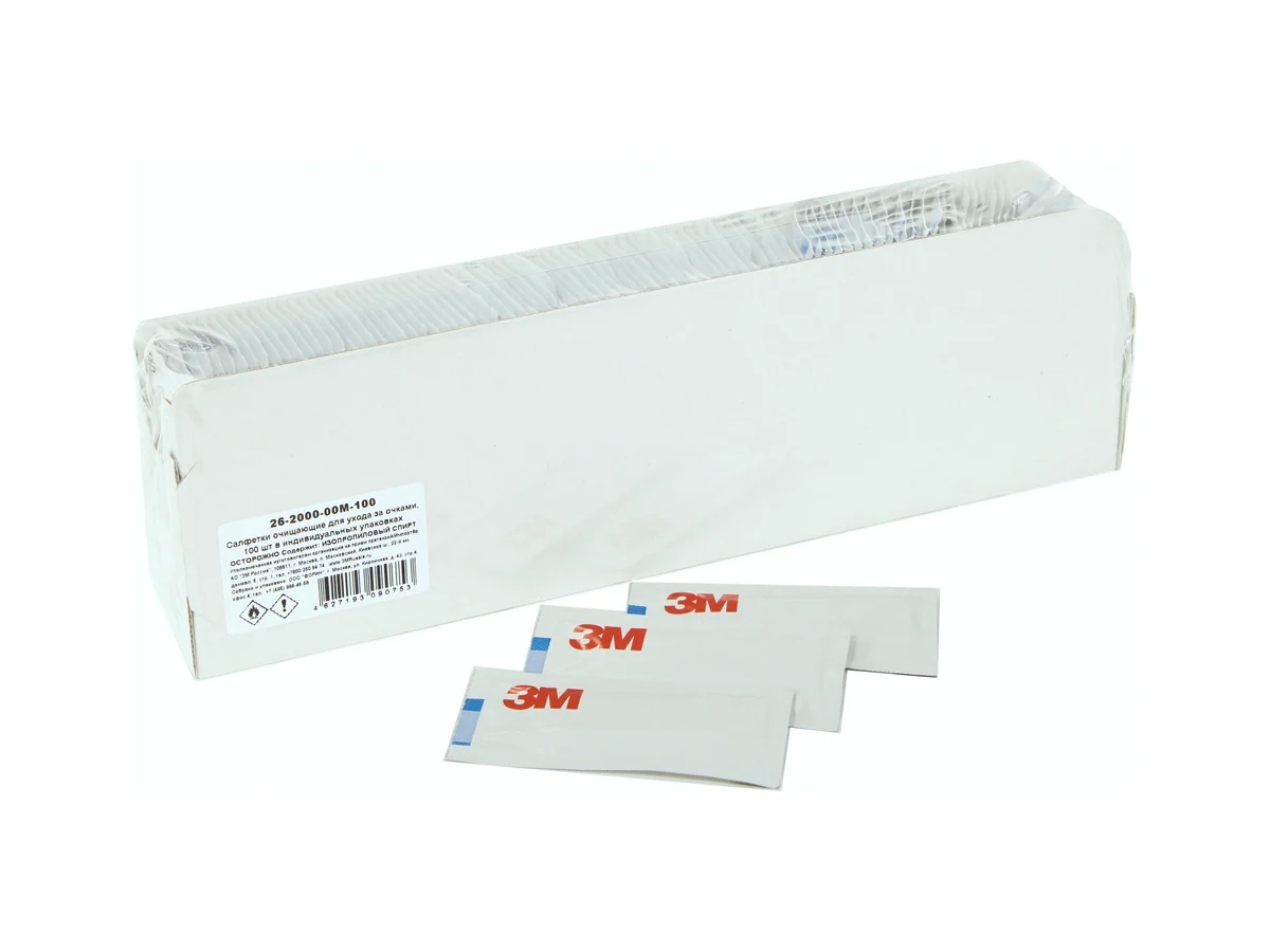 Очищающие салфетки 3М для ухода за очками в диспенсере, 100 штук в индивидуальных упаковках 4627193090753 предназначены для очистки очковых линз от загрязнений.
