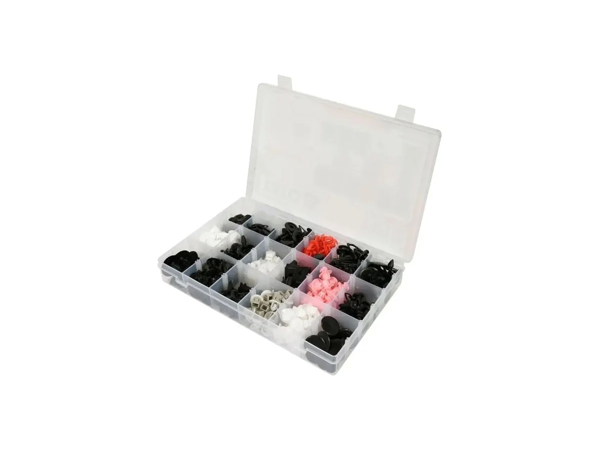 Наборы крепежа от YATO предназначены для внутренней и внешней обшивки автомобиля. С помощью клипс возможен монтаж уплотнителей, радиаторной решетки, брызговиков, бампера и прочих элементов кузова.