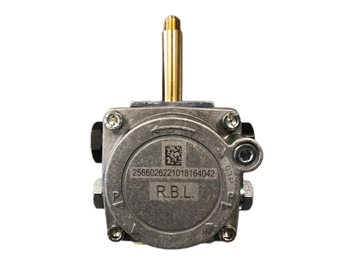 Жидкотопливный насос Riello R.B.L. 2566026 выполняет функцию нагнетания давления до 15 атмосфер, необходимого для подачи дизтоплива на форсунку. Модель выпускается для комплектации горелок Riello небольшой мощности.