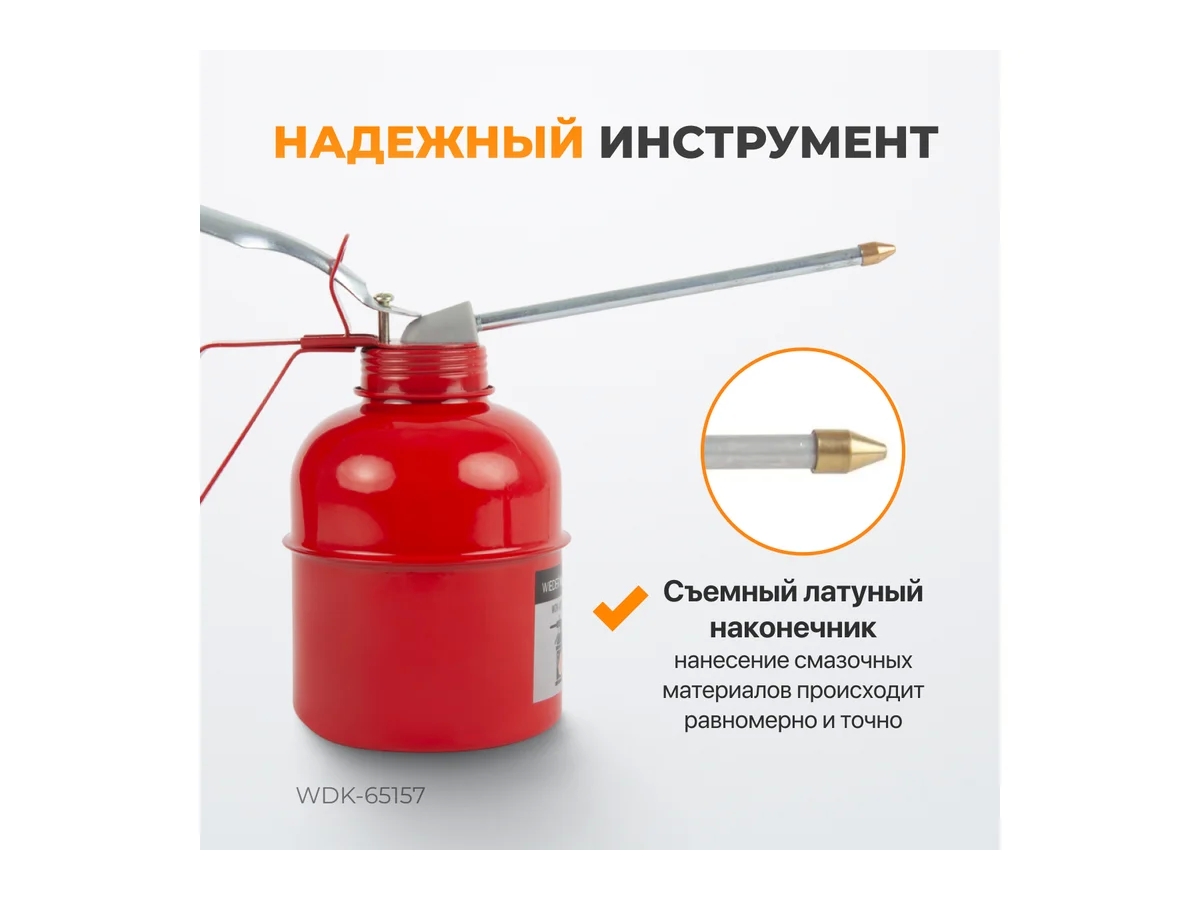 Масленка для жидкого масла с фиксированным носиком WDK-65157, 250 мл — компактный и удобный инструмент для хранения и точного нанесения смазки на рабочие узлы автомобиля.