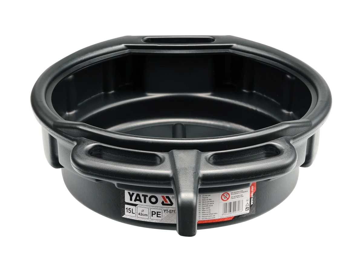 Чаша для слива отработанного масла или других рабочих жидкостей. Изготовлена из полипропилена, имеет ручки для переноски и профилированное место для заливки.