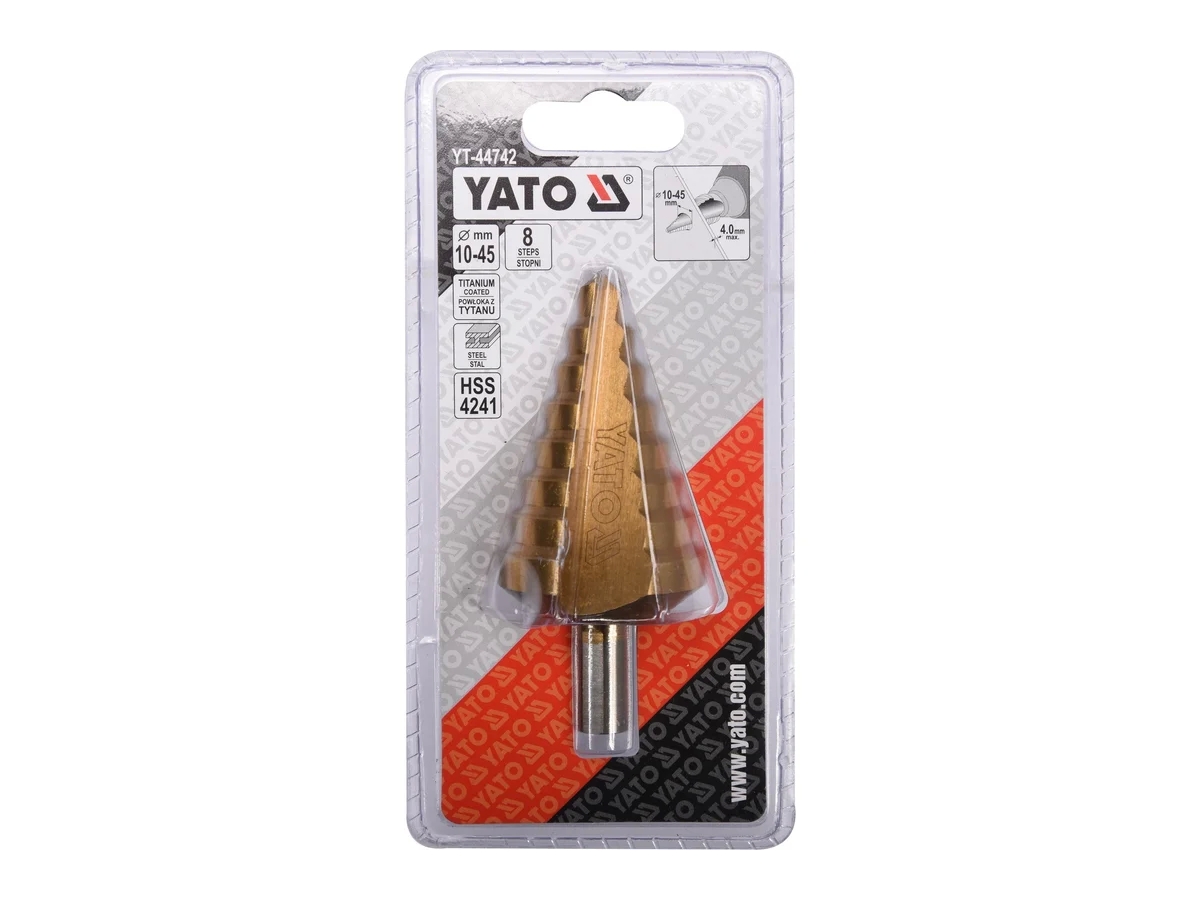 Сверло ступенчатое 10-45 мм YATO YT-44742 предназначено для сверления высококачественной нержавеющей стали, конструкционной и холоднокатаной стали, цветных металлов, стальных листов, пластмасс.