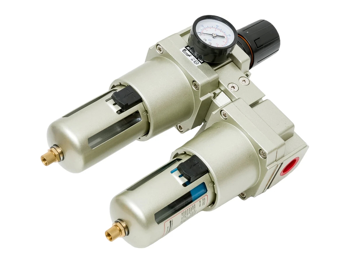 Блок подготовки воздуха двухступенчатый AFW5050-2St Русский Мастер РМ-383717 обеспечивает очистку сжатого воздуха от водно-масляного аэрозоля и механических загрязнений размером ?0.01 мкм. Фильтрация последовательно осуществляется картриджем из пористой бронзы (1-я ступень, 5 мкм) и сменным фильтром тонкой очистки из микроволокна (2- я ступень, 0,01 мкм).