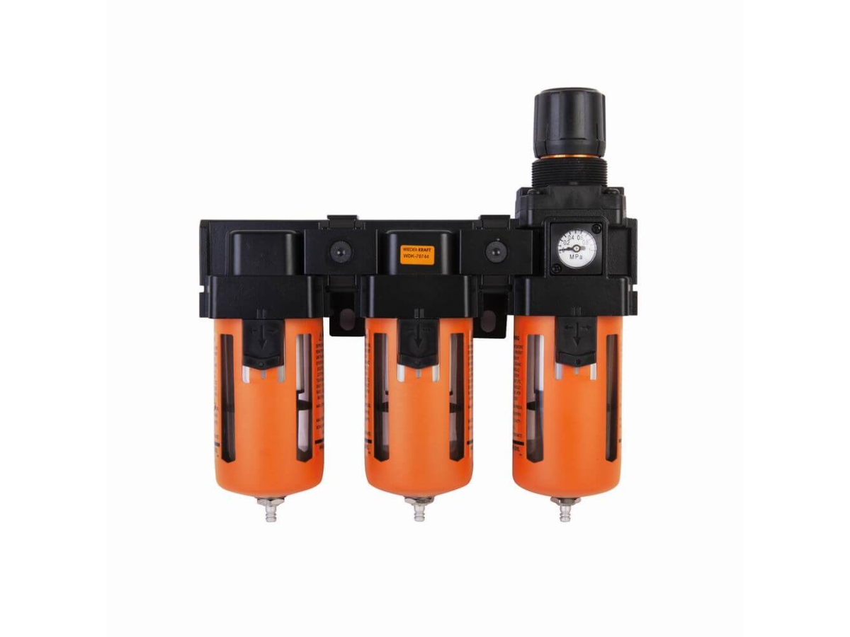 Модульная группа WIEDERKRAFT WDK-70744 предназначена для очистки сжатого воздуха от механических частиц, воды и минерального масла. Блок оснащен трехступенчатой фильтрацией, который обеспечивает высокий уровень очистки. Имеется регулятор давления, который предназначен для контроля и фиксации давления в пневмосистеме.