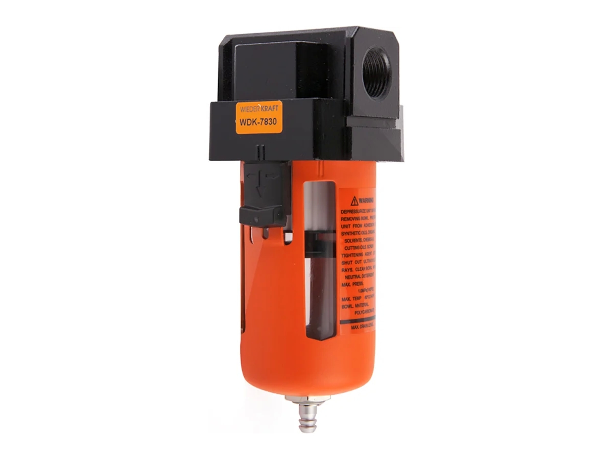 Фильтр-масло/влагоотделитель WIEDERKRAFT WDK-7830 используется совместно с пневмоинструментом. Предназначен для очистки сжатого воздуха от механических частиц, воды и минерального масла.