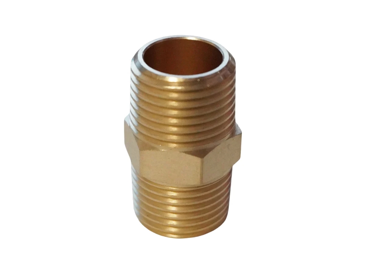 Латунный прямой переходник 1/2"M-1/2"M применяется для подключения пневмоинструмента и элементов пневмосистемы. Обеспечивает переход между двумя внутренними резьбами одинакового размера.