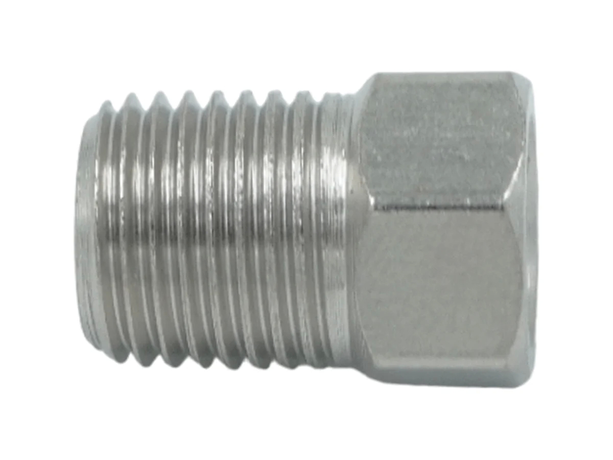 Стальной прямой переходник (футорка) 1/8"F-1/4"M применяется для подключения пневмоинструмента и элементов пневмосистемы. Обеспечивает надежный переход с наружной резьбы 1/4" на внутреннюю резьбу 1/8".
