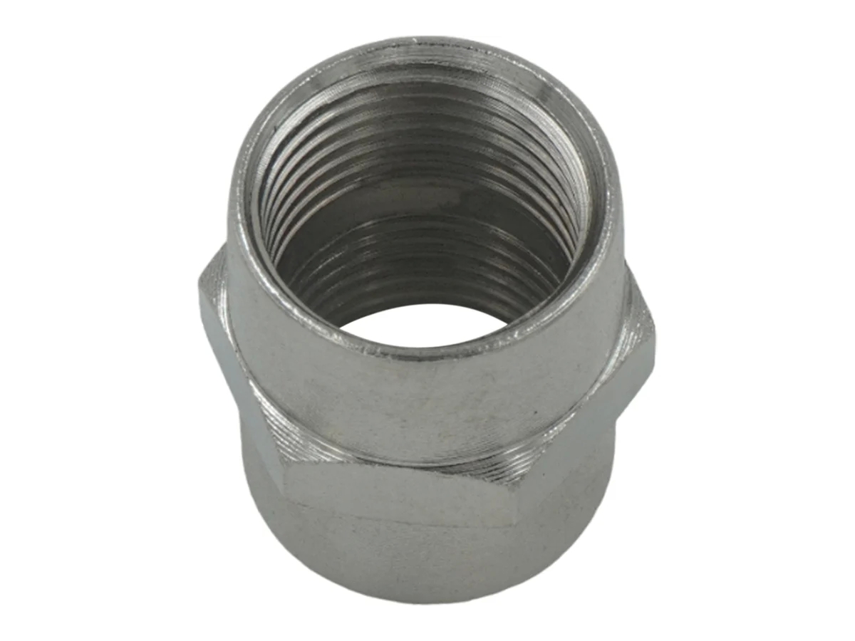 Стальная прямая муфта с резьбой 1/2"F–1/2"F применяется для подключения пневмоинструмента и элементов пневмосистемы. Обеспечивает надежный переход между двумя внутренними резьбами одинакового размера.