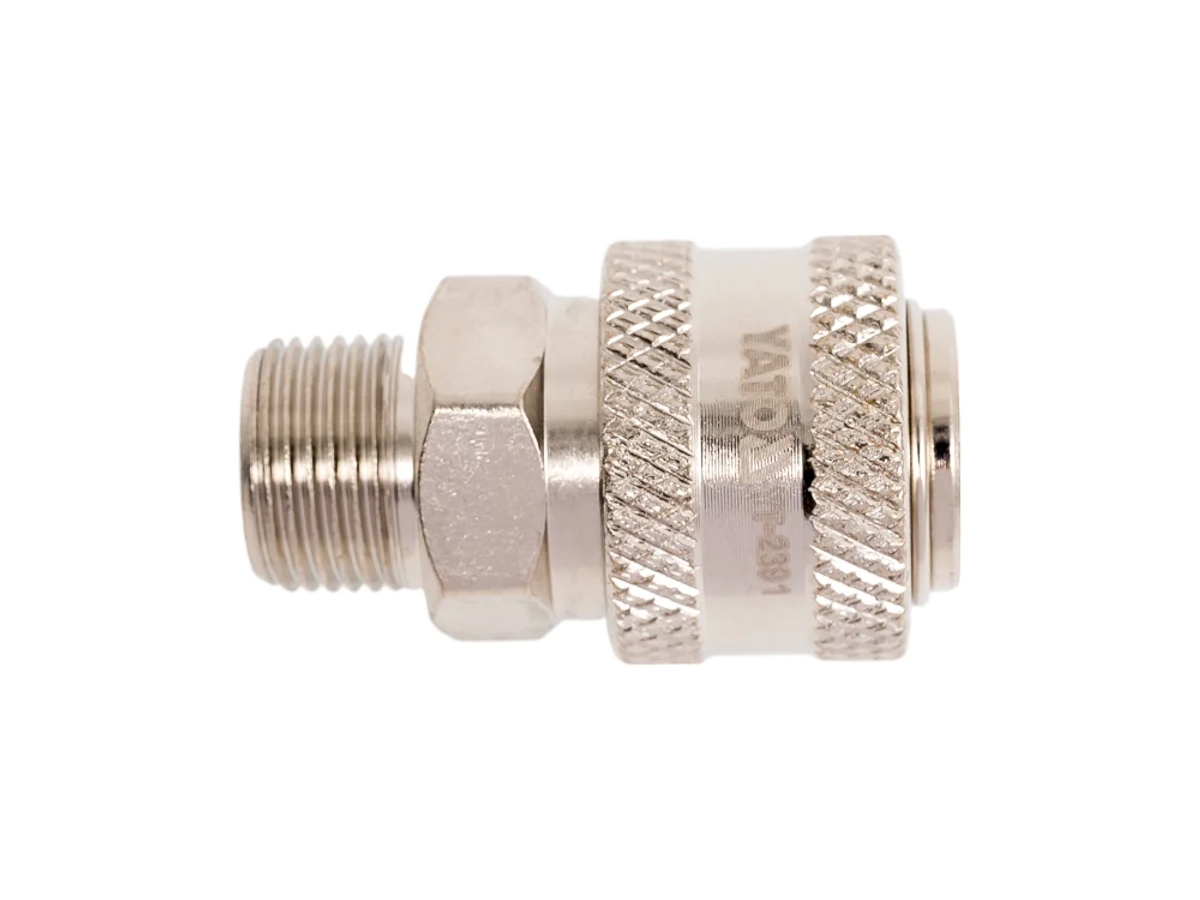 Быстроразъемная муфта YATO YT-2391 используется совместно с компрессорным оборудованием. Применяется для перехода с резьбы 3/8" на тип соединения "рапид". Созданная конструкция обладает высокой надежностью и герметичностью.
