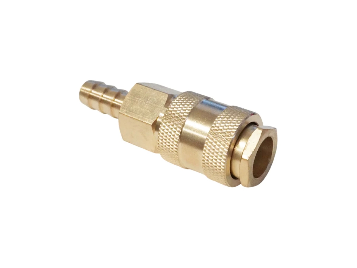 Латунный разъем "мама" быстросъемный с елочкой диаметром 10 мм. Предназначен для установки на выходном конце пневмошлангов с внутренним диаметром 10 мм для создания автоматических прерывателей подачи воздуха. Латунный корпус исключает возможность появления коррозии.